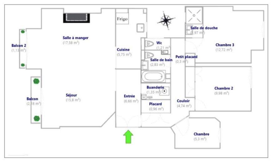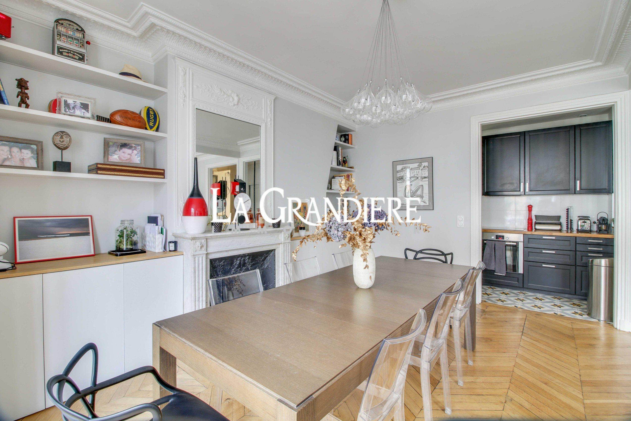 Paris 16ème – Passy / Vital – Coup de coeur – 87m2 – 5ème étage (ascenseur) – Balcon. En plein coeur de Passy, dans un immeuble ancien, appartement traversant (est-ouest), de qualité, compact et en parfait état. Il se compose actuellement d’une entrée, une double réception(33m2) donnant sur balcon (table possible), une cuisine attenante ouverte aménagée et équipée, trois chambres dont une petite au calme sur cour, deux wc, une salle de bains, une salle de douche, nombreux placards et une cave . Parquet, Moulures, Cheminée. Cour intérieure ravalée.