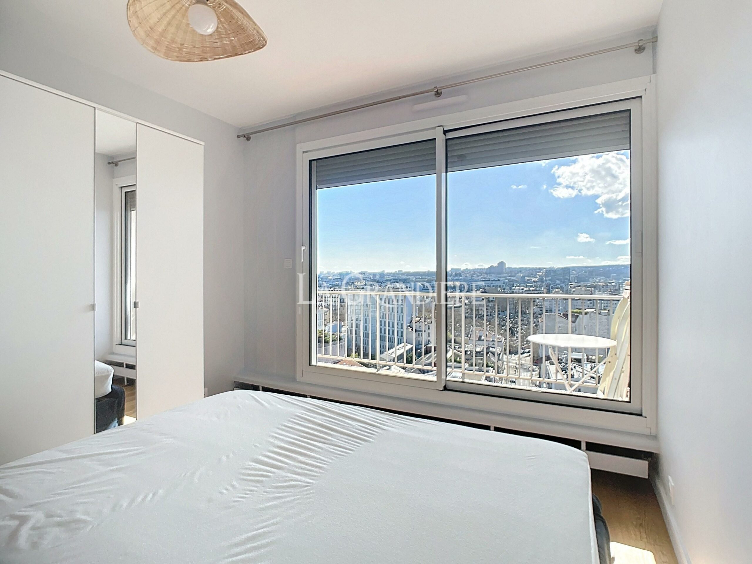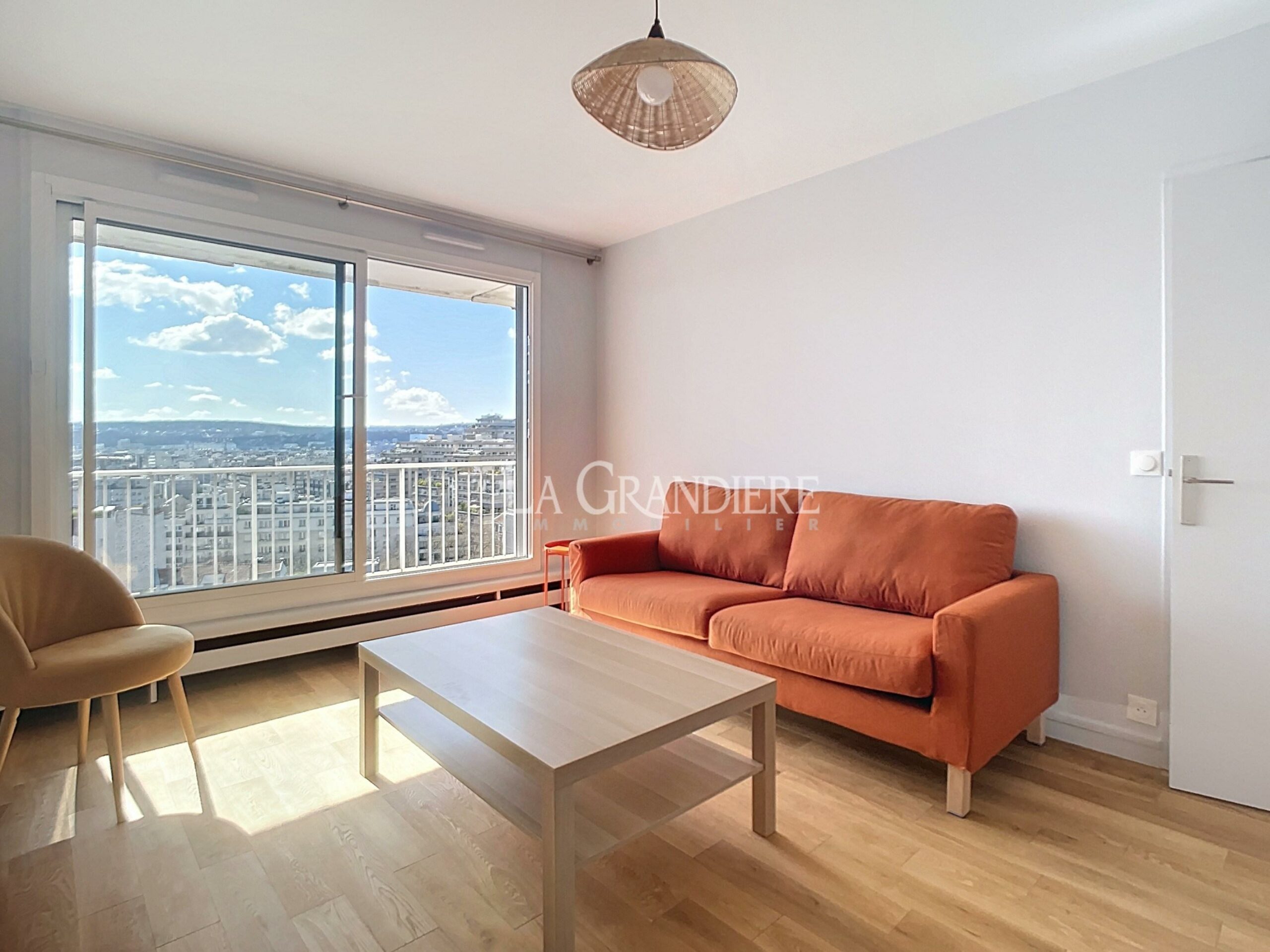 Boulogne-Billancourt – Métro Jean-Jaurès – 13ème étage – 2 pièces – 1 chambre – 39,77 m2 – Terrasse – Dans une résidence de standing, très bel appartement meublé avec vue panoramique plein ciel. Il se compose d’un salon avec une cuisine ouverte, d’une chambre et d’une salle de bains avec wc, ouvrant sur une terrasse de plain-pied. Parquet Rangements – Volets électriques – Une cave complète ce bien – Proximité Métro, commerces et jardins.