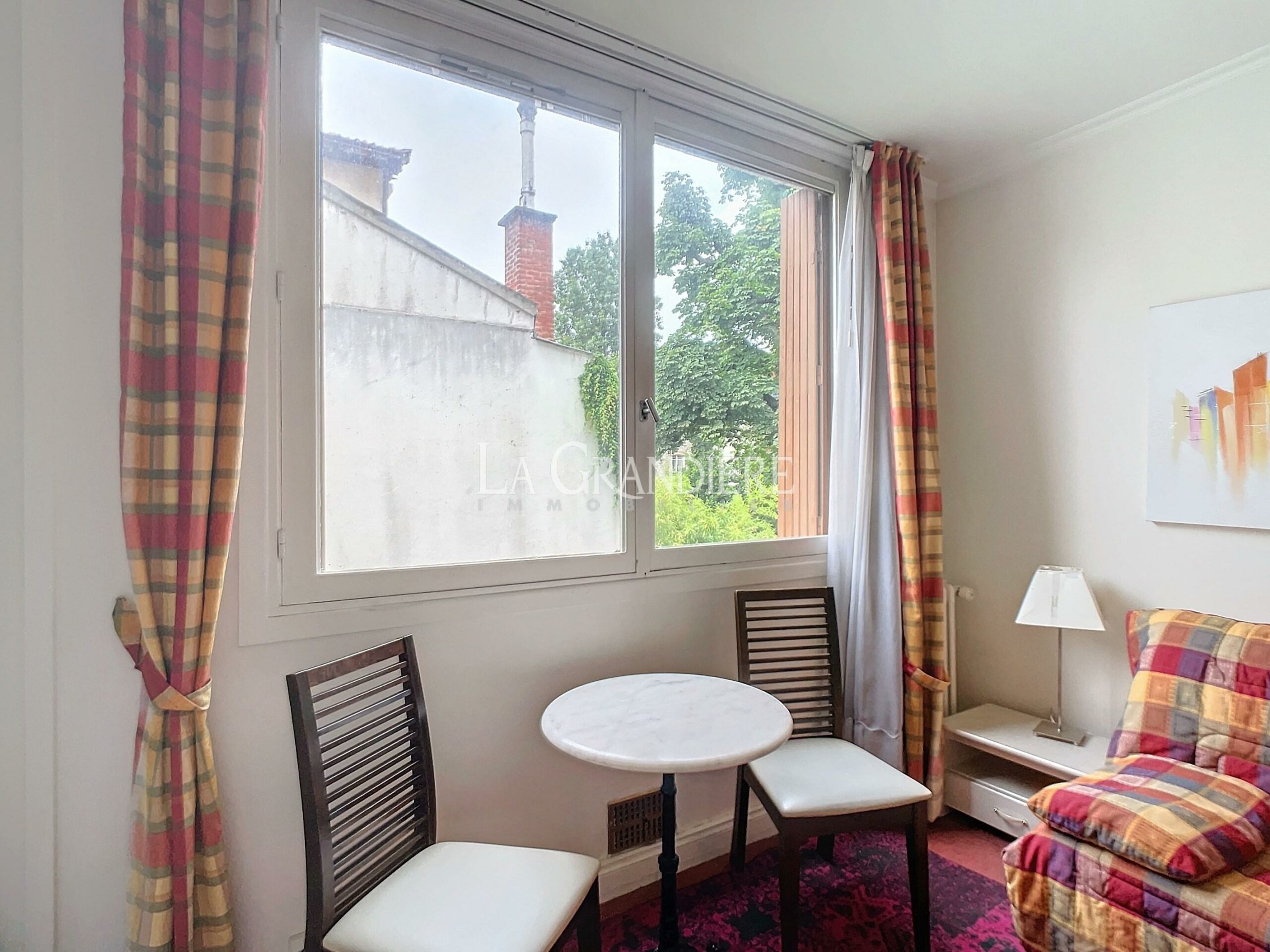 Dans une résidence arborée de standing à proximité de la Porte Molitor à Boulogne Billancourt, charmant studio de 17,72 m2, situé au 1er étage, au calme, sur verdure. Il comprend une petite entrée avec rangement, une pièce principale, une cuisine séparée et une salle de bains avec wc. À rafraîchir.
