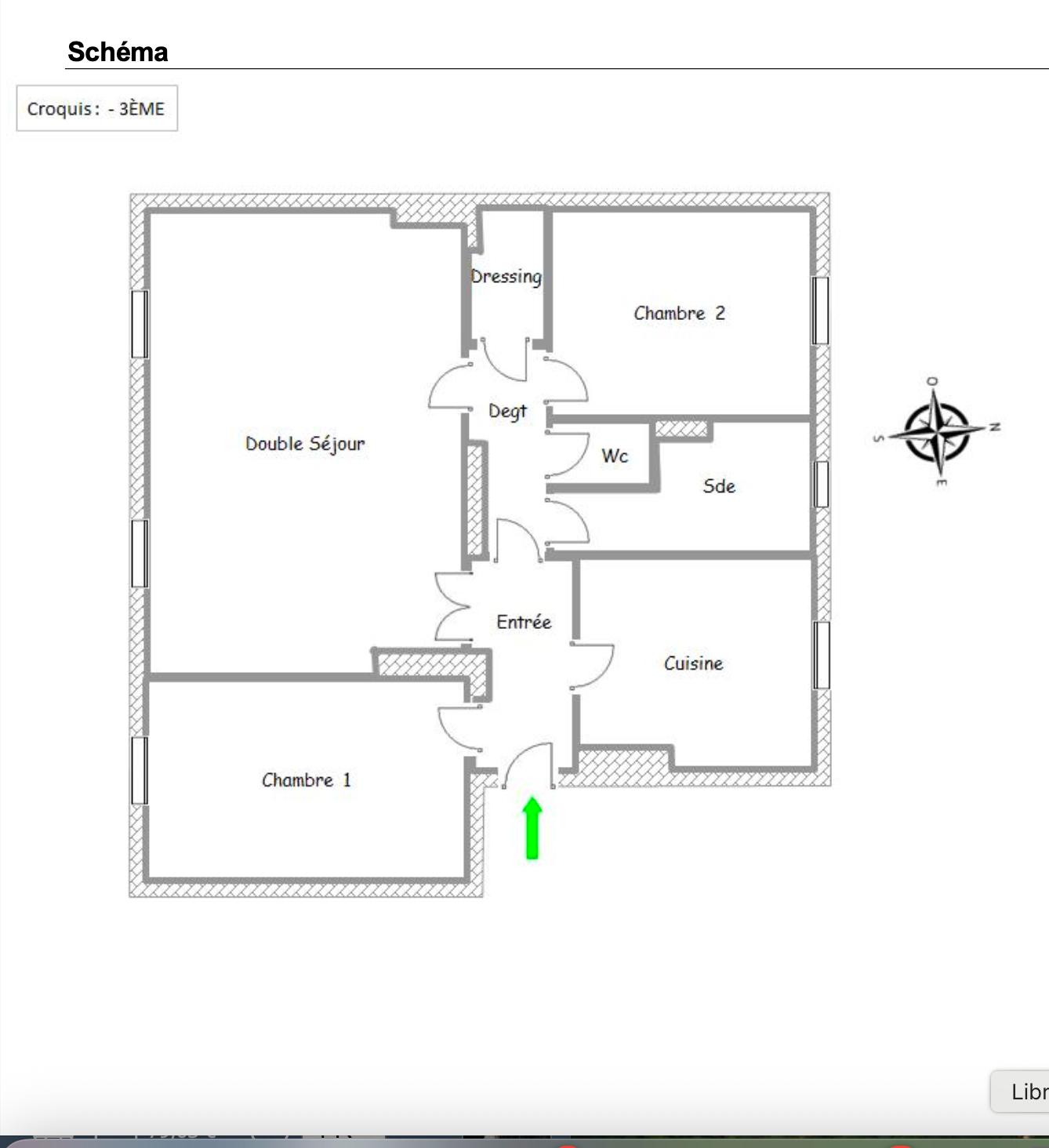 Au 3e étage d’un immeuble récent avec gardien et ascenseur, appartement traversant à rénover. Il se compose d’une entrée, d’un double séjour exposé sud ouest, de deux chambres (3ème chambre possible), d’une cuisine, d’un salle de douche, de WC séparés et d’un dressing. Fenêtres à double vitrage. Peu de vis-à-vis. Appartement lumineux et calme. Très bon plan. Cave.