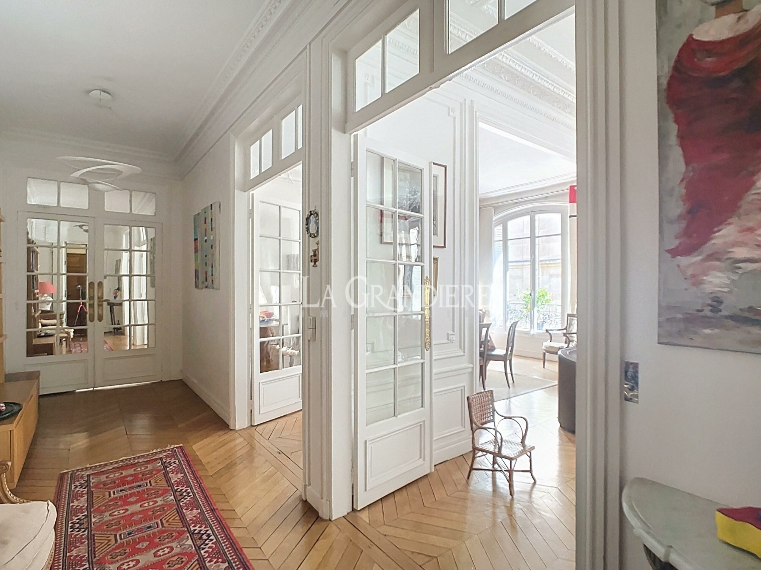 Paris 16 – Auteuil – Appartement d’une surface de 152 m2, situé dans une villa privée au calme, au 1er étage d’un immeuble haussmannien de standing, sécurisé par un visiophone, un interphone et une gardienne. Proche des commerces, des transports et des écoles : sectorisation Jean-Baptiste SAY. Charme de l’ancien : parquets, moulures et cheminées. L’appartement se compose d’une entrée, un salon, une salle à manger, une vaste cuisine dînatoire, trois chambres dont une chambre parentale avec sa salle d’eau, une quatrième chambre/bureau, une salle de bains avec douche et wc, un wc indépendant. Possibilité de se garer dans l’impasse. Local à vélos. Une pièce de service avec eau d’une surface de 8 m2 au 7ème étage accessible par escalier ainsi qu’une double cave complètent ce bien.