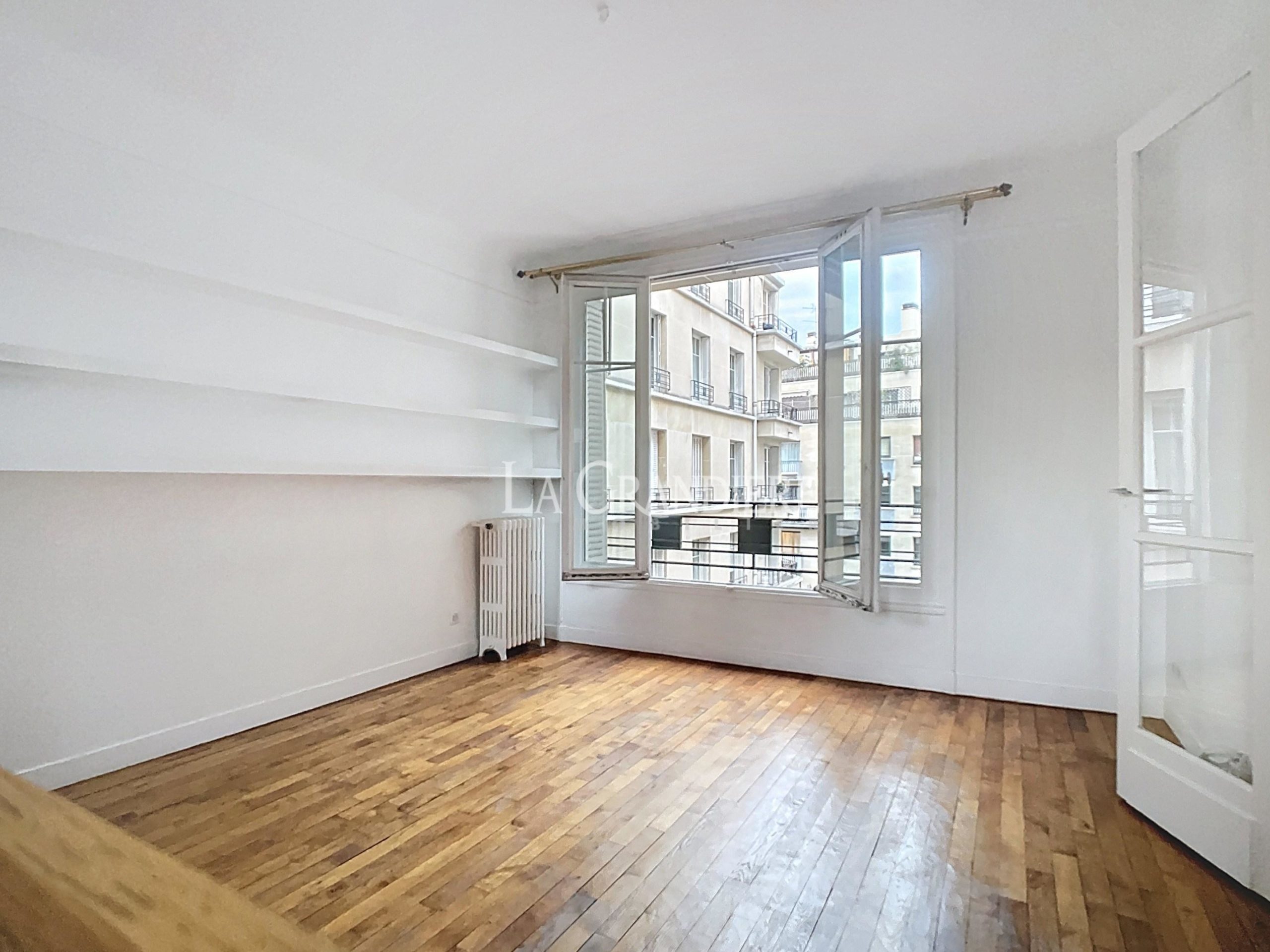 Dans un immeuble Années 30 de standing, sécurisé avec gardien, bel appartement comprenant une entrée, un salon avec une cuisine ouverte, une chambre au calme, une salle de bains avec wc. Une cave. Parquet, clair et lumineux. Proximité village d’Auteuil et espaces verts.