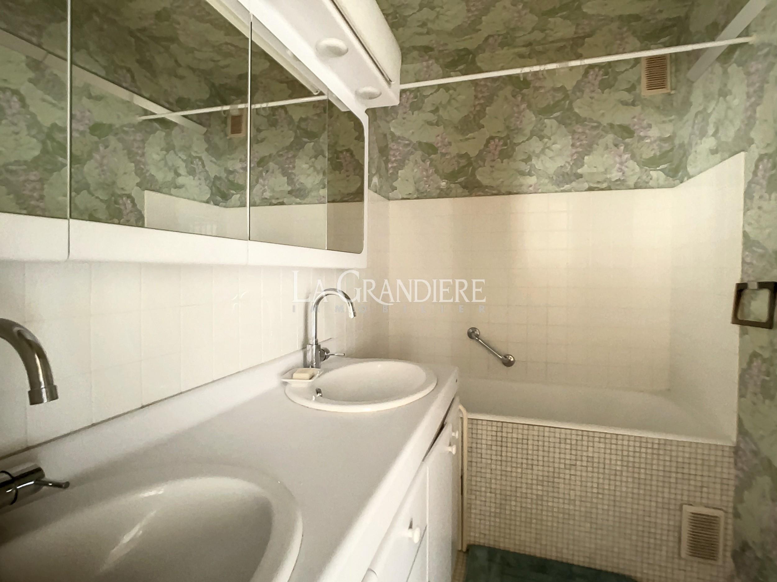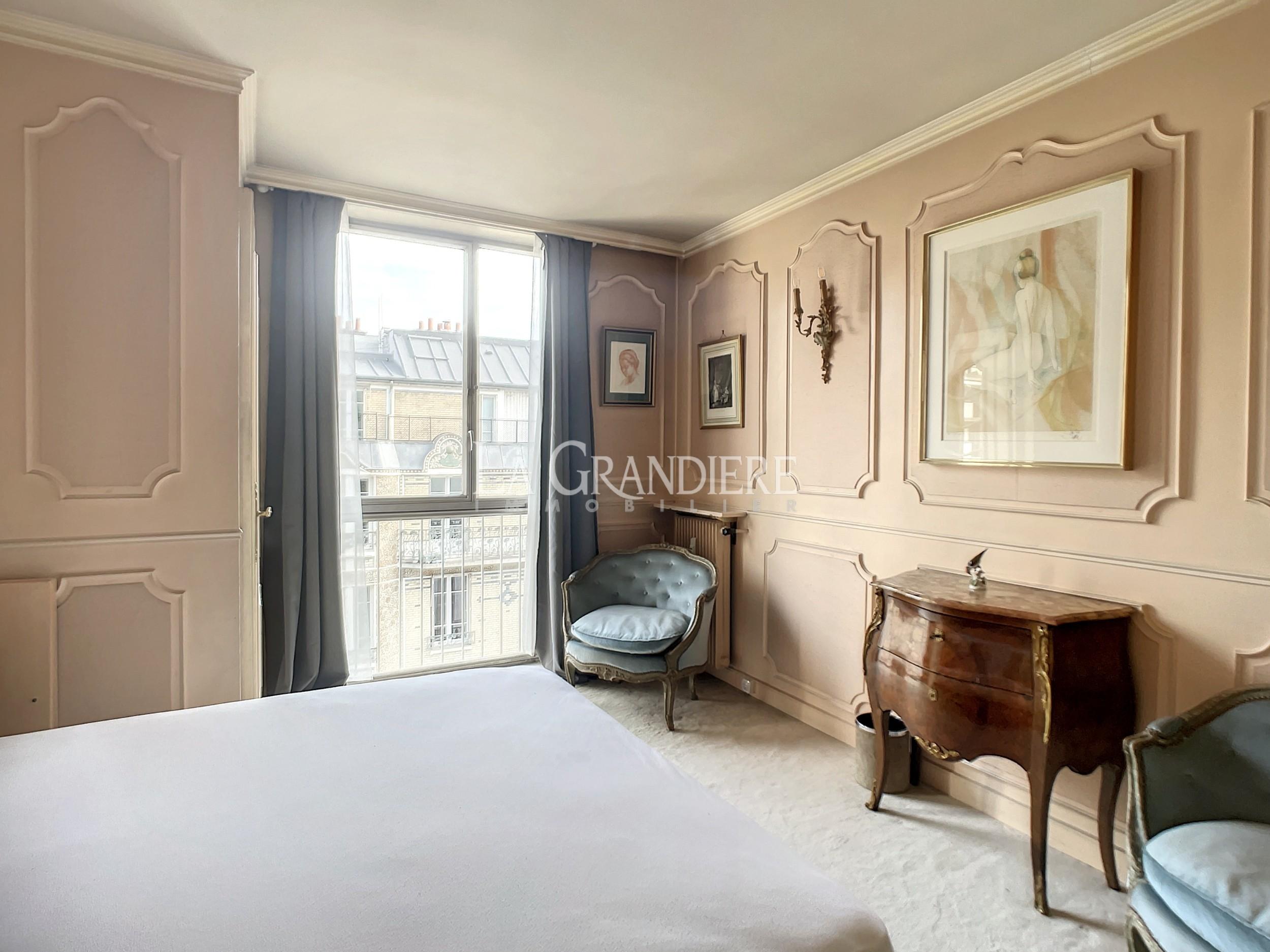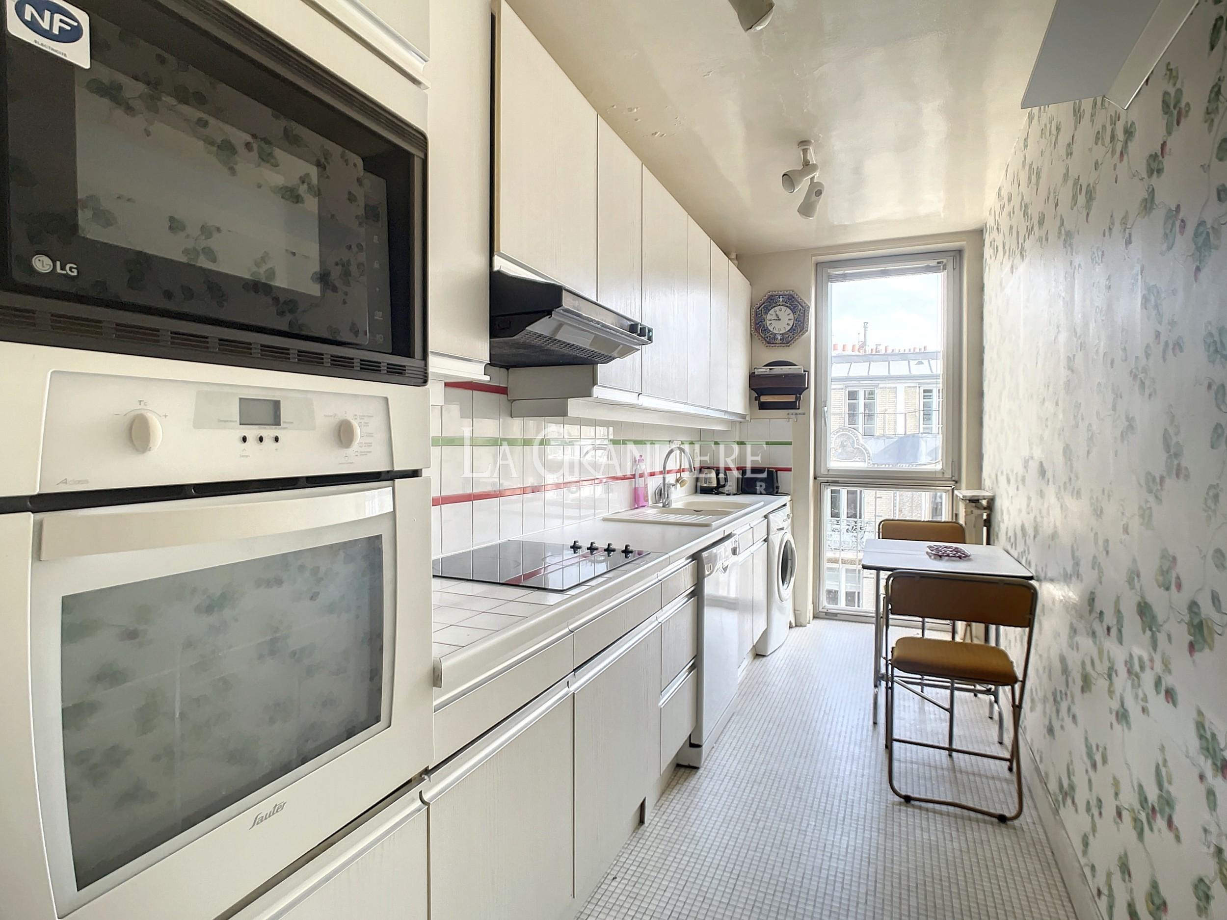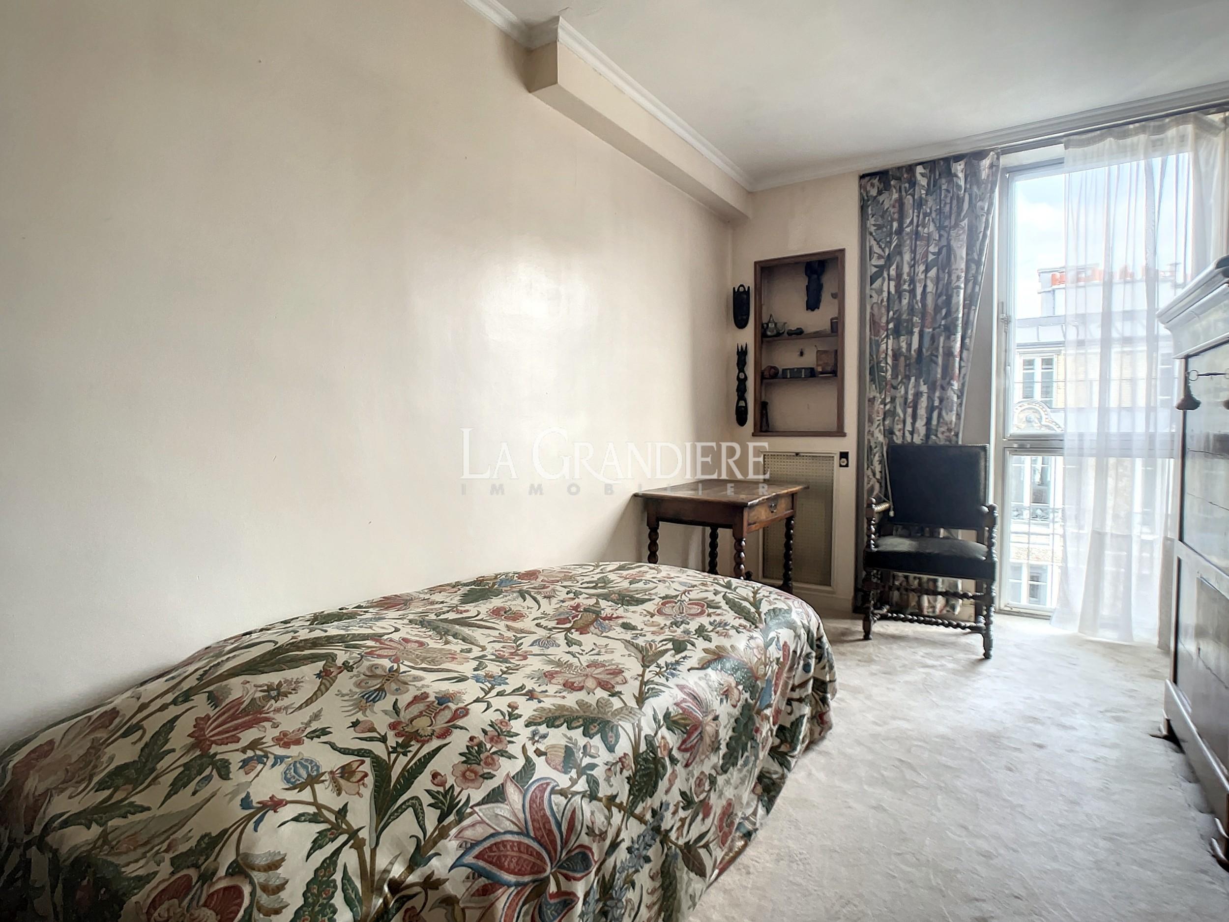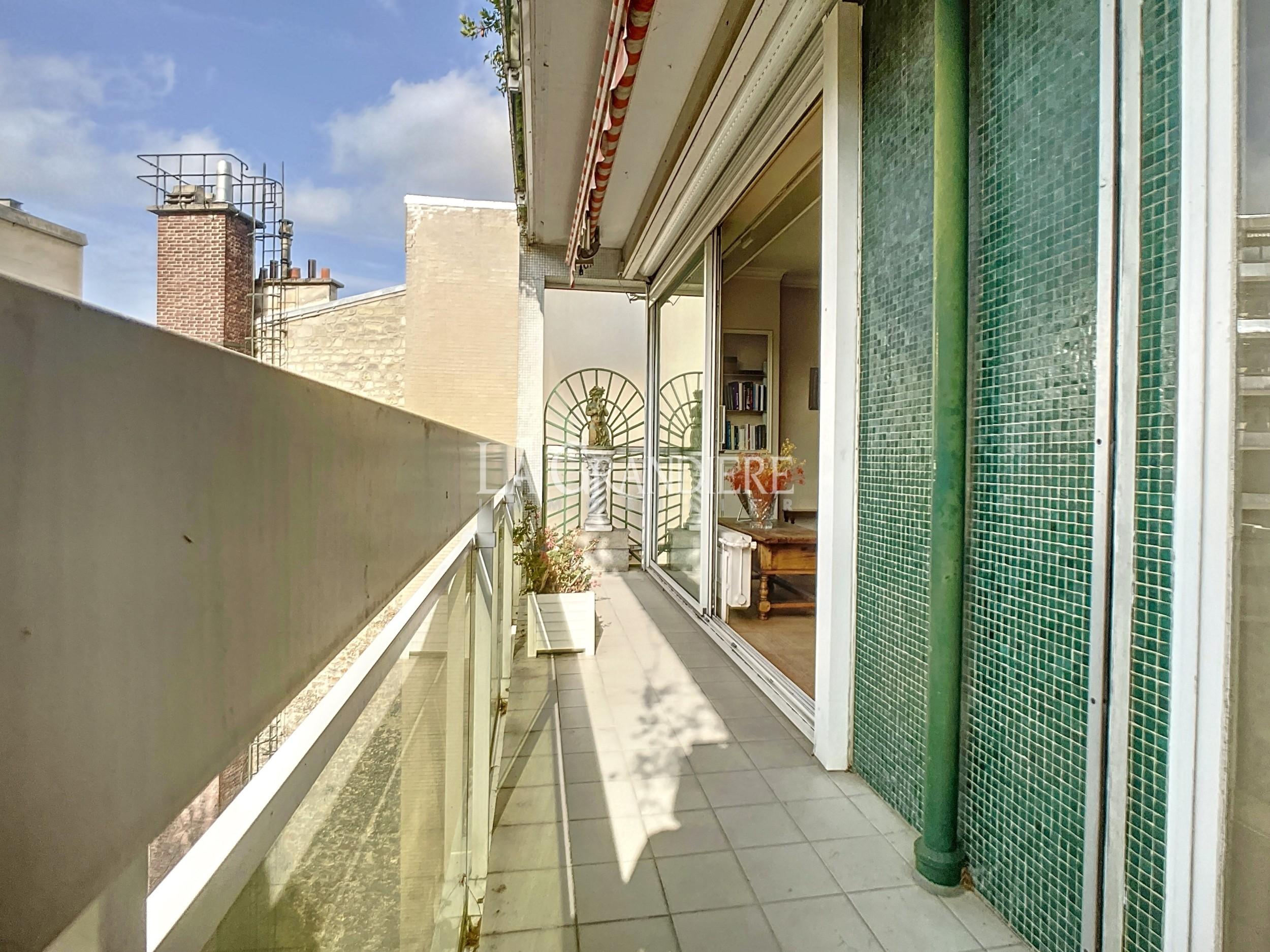 Au 7ème étage d’un immeuble 1964, appartement de 90,41 m2 Carrez. Il se compose actuellement d’une entrée avec placards, un très beau double séjour donnant sur un large balcon (baies vitrées) orienté Sud-Ouest, deux chambres, une salle de bains, un wc séparé et une cuisine séparée. Très bon plan, vue dégagée plein ciel et verdure – Calme absolu – Cave (7 m2) – Emplacement de parking dans l’immeuble pour 50 000 euros supplémentaires – Immeuble sécurisé par gardien, deux digicodes, un interphone – Deux ascenseurs dont un accessible directement du sous-sol (cave, parking, poubelles) – Nécessite quelques travaux de mise au goût du jour – À proximité de tous les commerces de première nécessité, Métro (Église d’Auteuil), des écoles (sectorisation Jean-Baptiste Say).