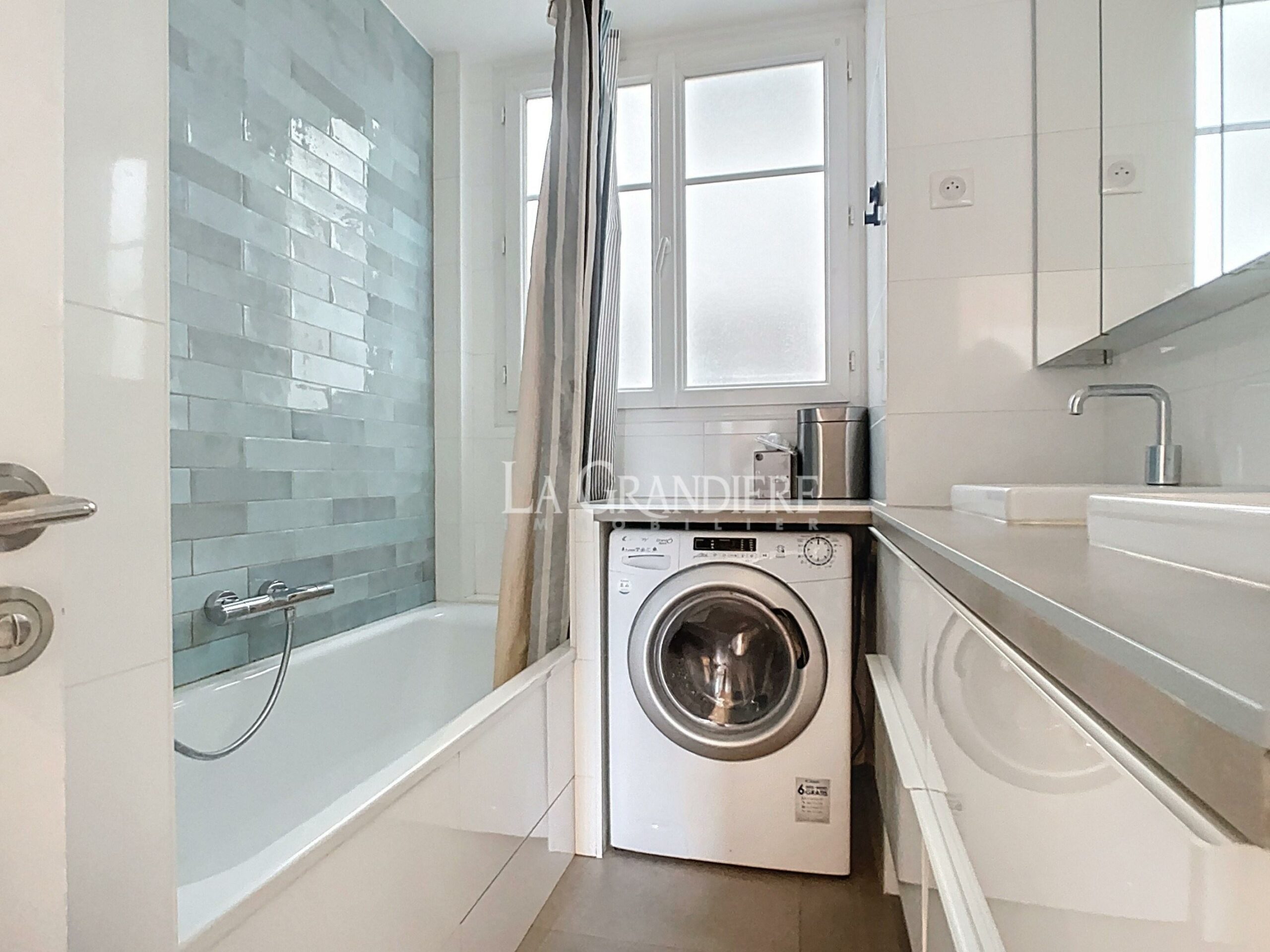 Dans un bel immeuble Années 30, charmant appartement meublé comprenant une belle entrée ouvrant sur un salon avec une cuisine ouverte, deux chambres dont une grande, une salle de bains, un wc séparé. Parquet. Nombreux rangements. Clair et lumineux. Calme. Bonne distribution. Proximité transports, écoles et commerces. Ameublement en cours.