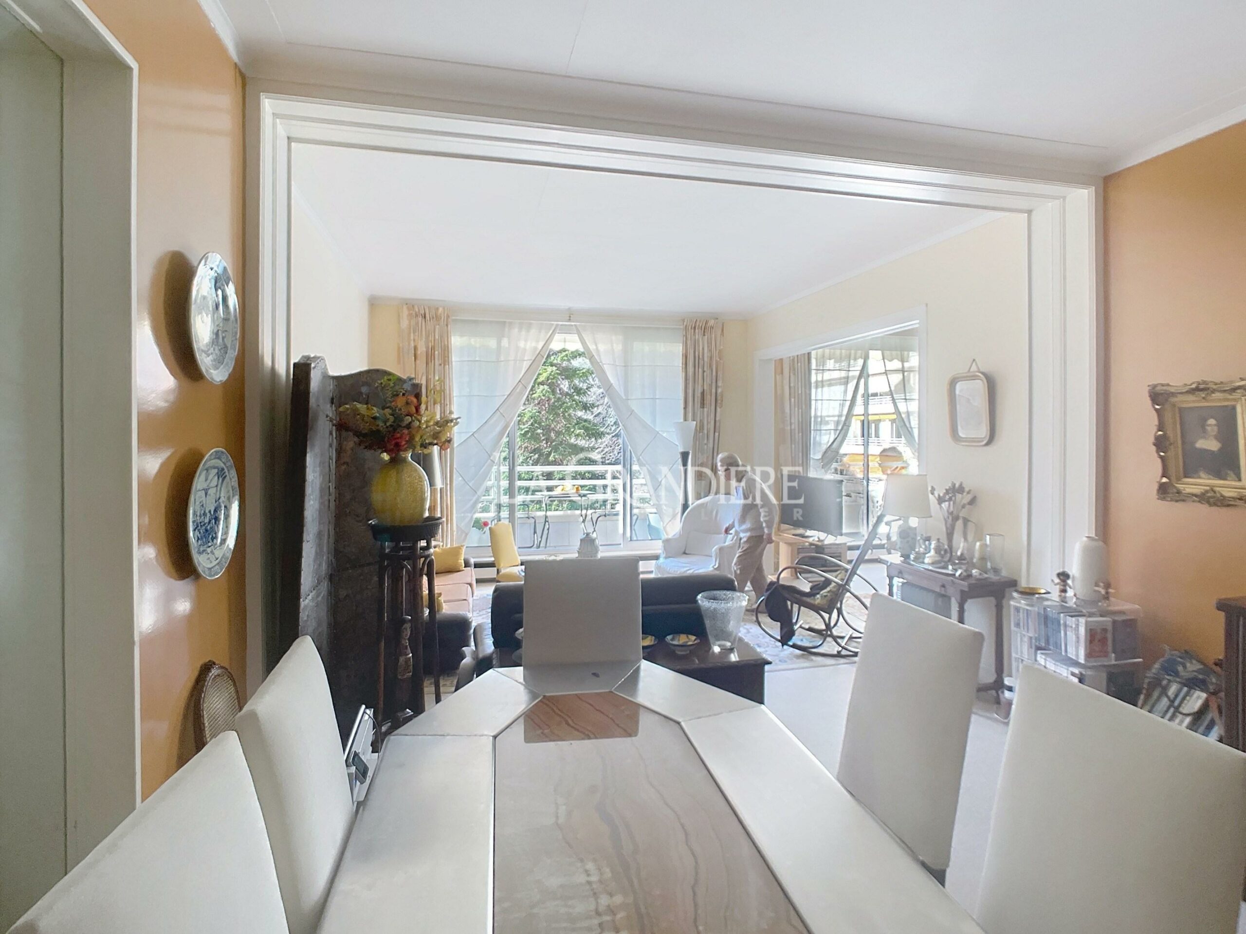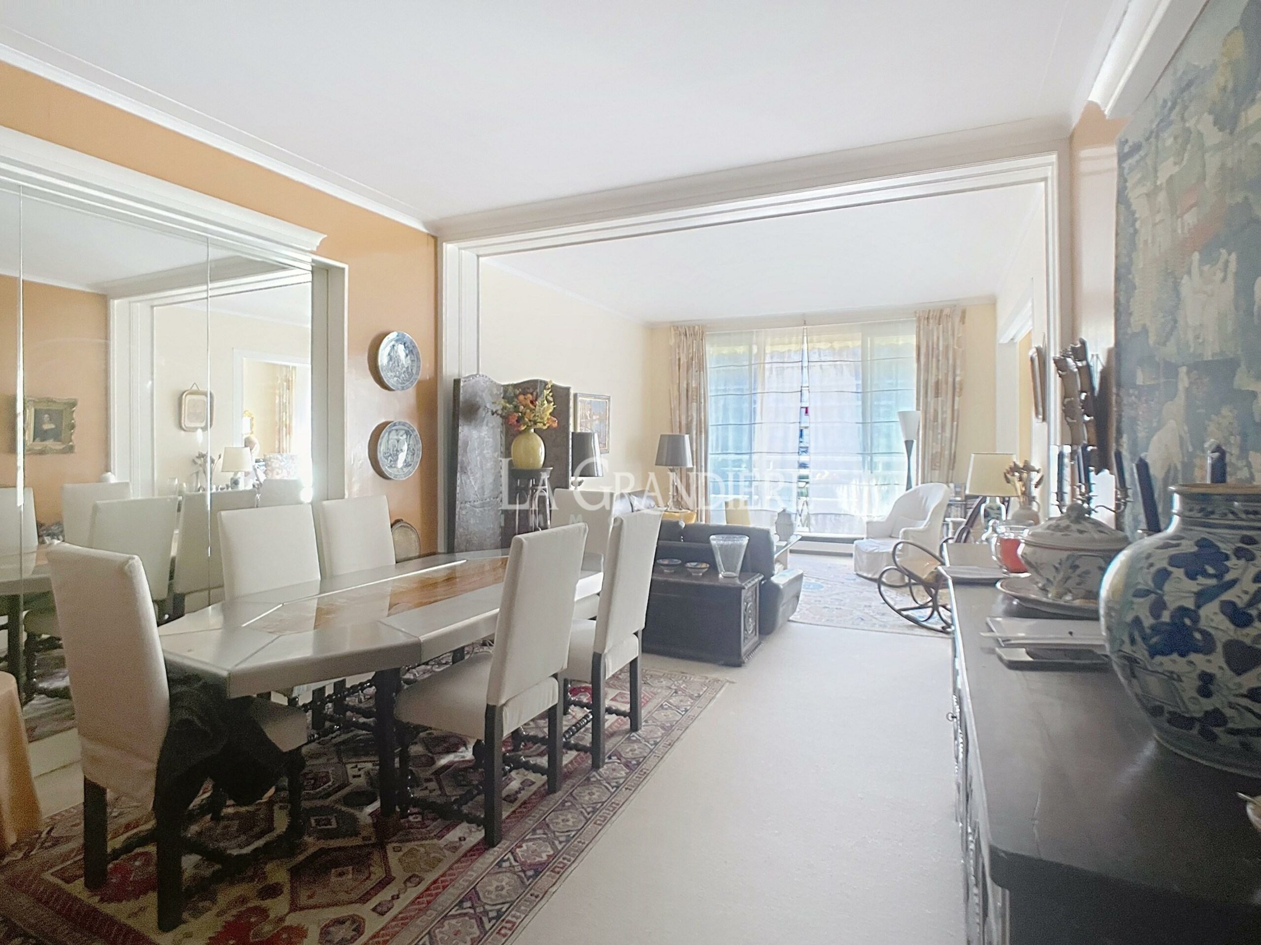 Découvrez cet appartement traversant de 111 m² situé au cœur du 16ème arrondissement de Paris, au sein d’une résidence de standing entièrement sécurisée avec un service de gardiennage et d’intervention 24 heures sur 24 et un ascenseur. Avec une belle hauteur sous plafond de 2,95 mètres, cet appartement comprend une entrée spacieuse menant à un vaste salon salle à manger lumineux exposé Ouest avec de grandes baies vitrées. Un large balcon permet de profiter du calme et des journées ensoleillées avec une table et des chaises avec vue sur les jardins. L’appartement comprend également une grande chambre parentale, deux autres chambres, une salle de bains, d’une salle de douche avec WC et une cuisine entièrement aménagée. Cave – Local à vélos et poussettes. Possibilité d’un box fermé et sécurisé pour SUV.