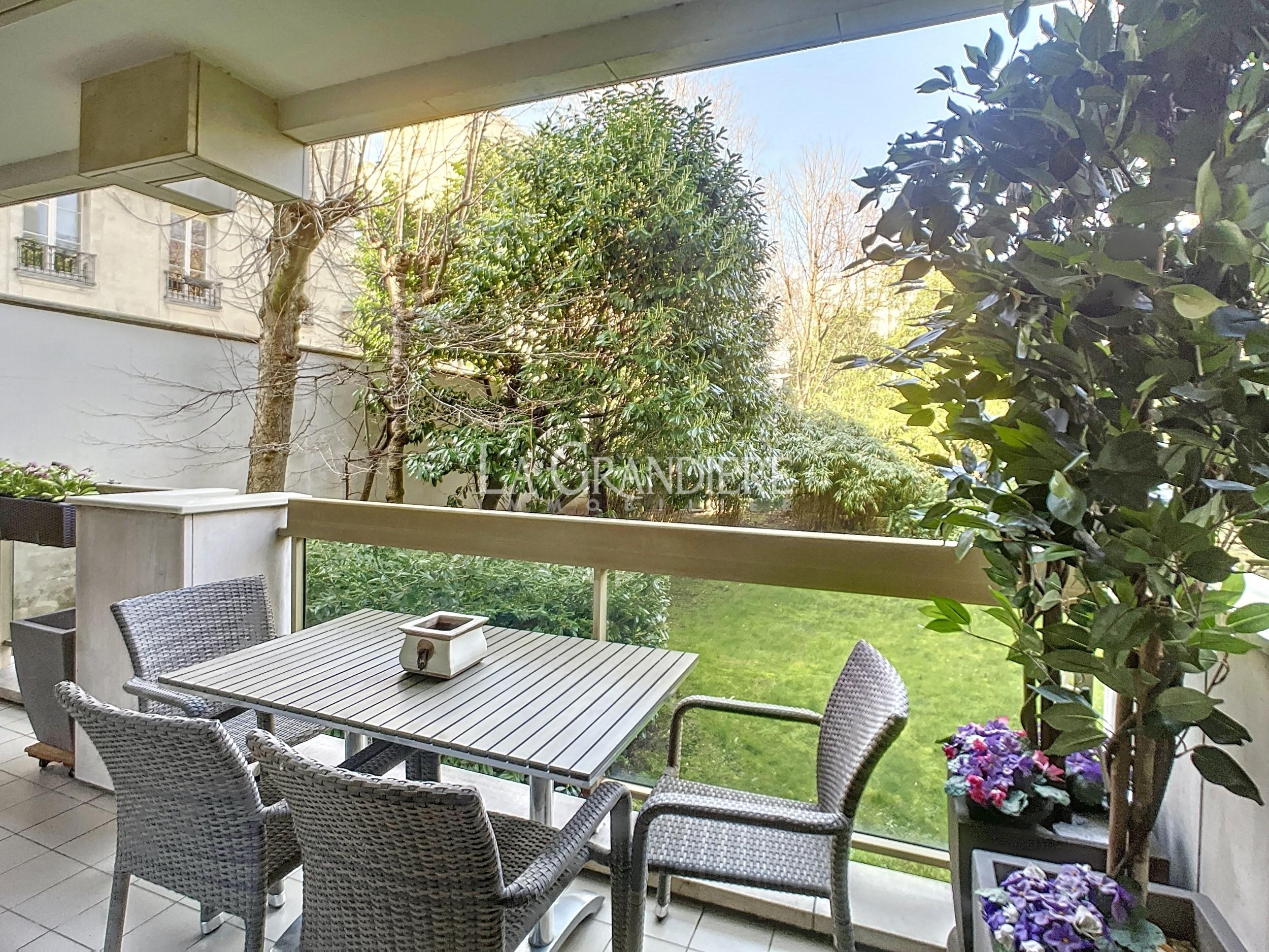Paris 16 – Jasmin – 1er étage sur jardin – 4 pièces – 2 chambres – 114 m2 – Large balcon –