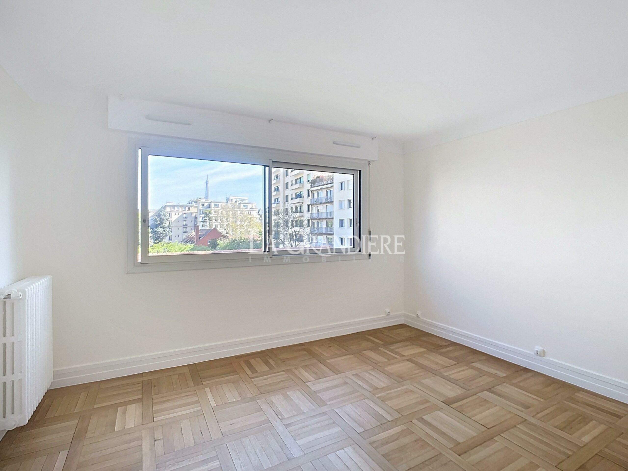 Dans une résidence moderne de standing, bel appartement comprenant une entrée, un salon, deux grandes chambres dont une côté jardin avec vue Tour Eiffel, une cuisine séparée aménagée et partiellement équipée, une salle de bains et un wc séparé. Dressing et placards. Très bon état. Bon plan, calme et lumineux. Proximité transports, commerces et écoles.