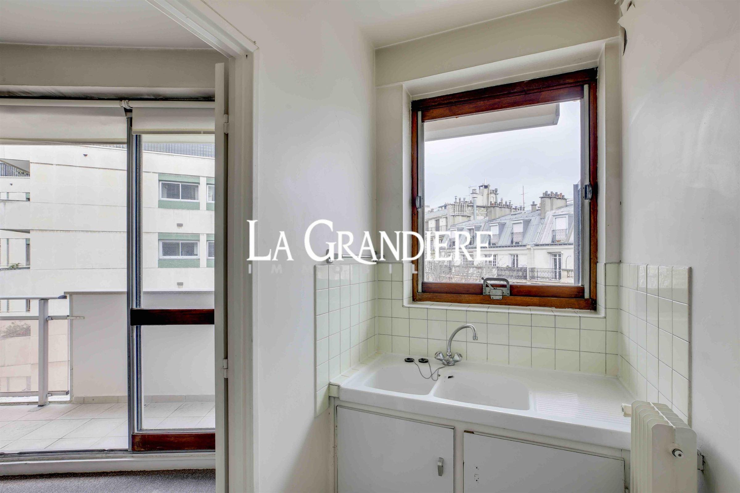 Paris 16ème – Passy / Talma – Au coeur de Passy – Etage élevé – Balcon vue dégagée – Dans une petite rue résidentielle et calme, au 5ème étage d’un immeuble récent de très bon standing, un studio de 25m2 comprenant une entrée, un séjour avec une baie vitrée ouvrant sur un balcon de 5m2, une cuisine, une salle de bains avec wc, un dressing. Travaux à prévoir.