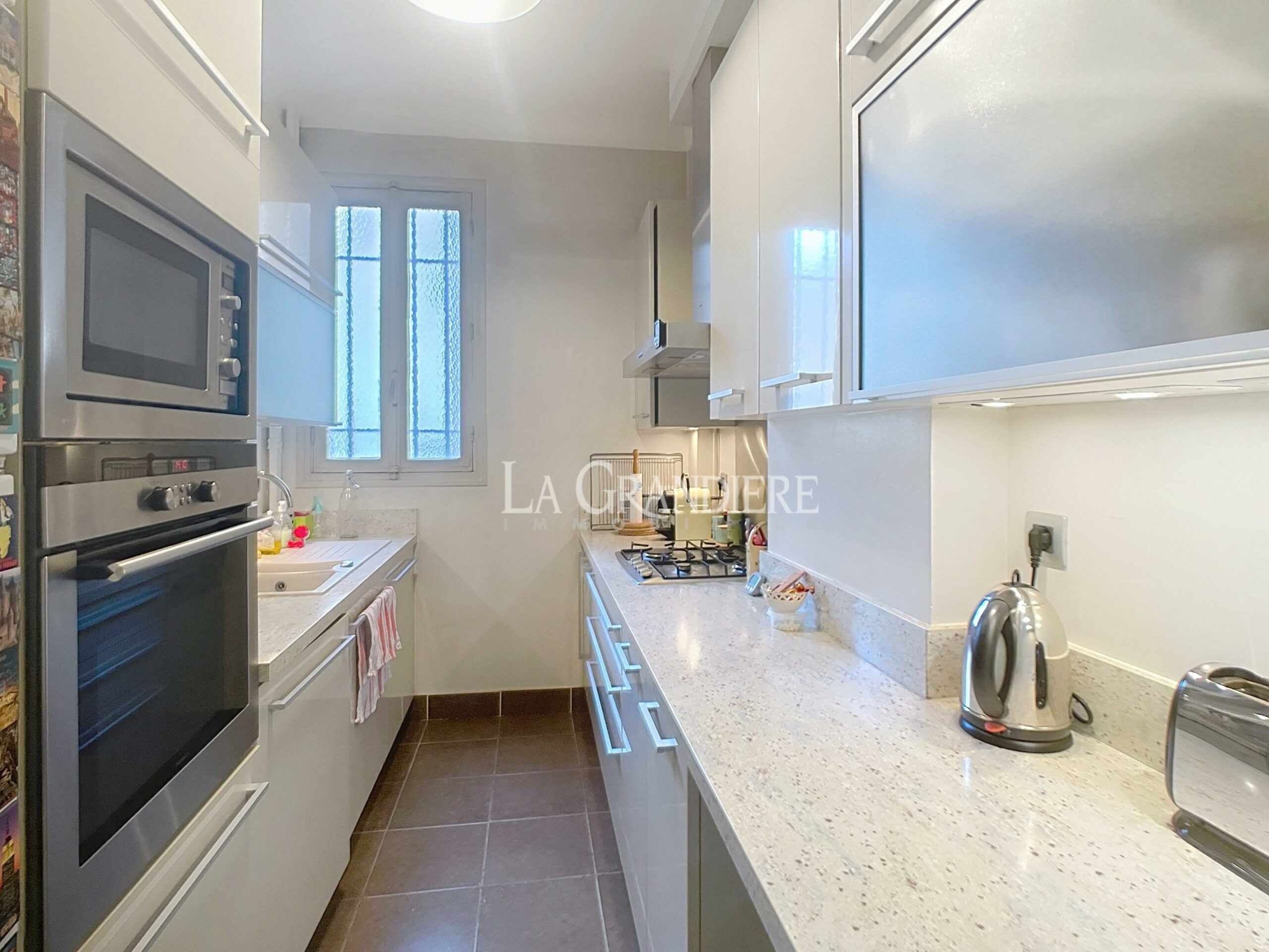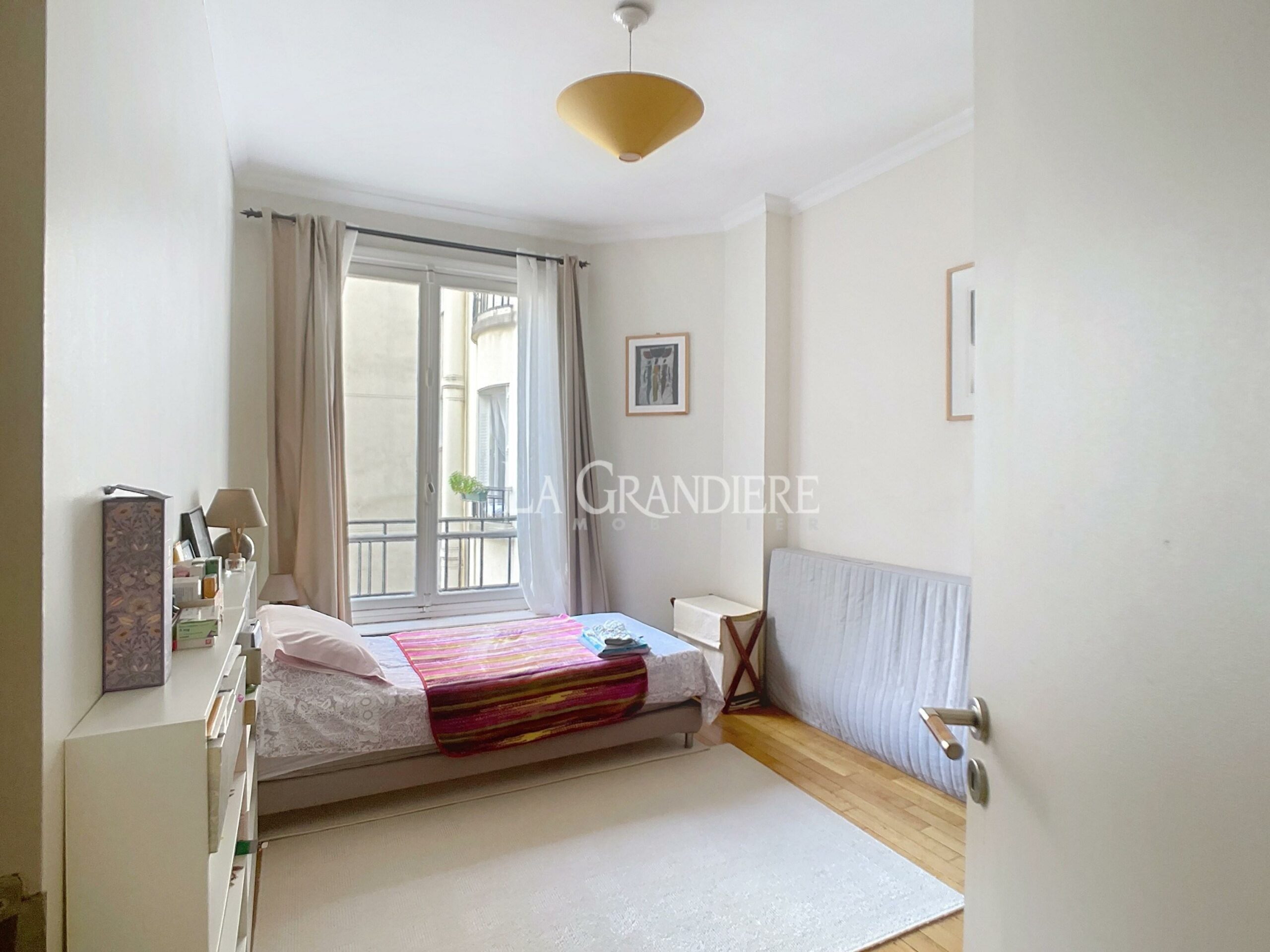 Dans un immeuble édifié en 1930, au 4ème étage, accessible par un ascenseur, appartement d’une surface de 86 m2 qui se compose d’une entrée, un double salon, une cuisine séparée, deux chambres, une salle de bains et un wc indépendant. Au calme d’une voie privée, proche des transports, des commerces et des écoles. Une cave complète ce bien.