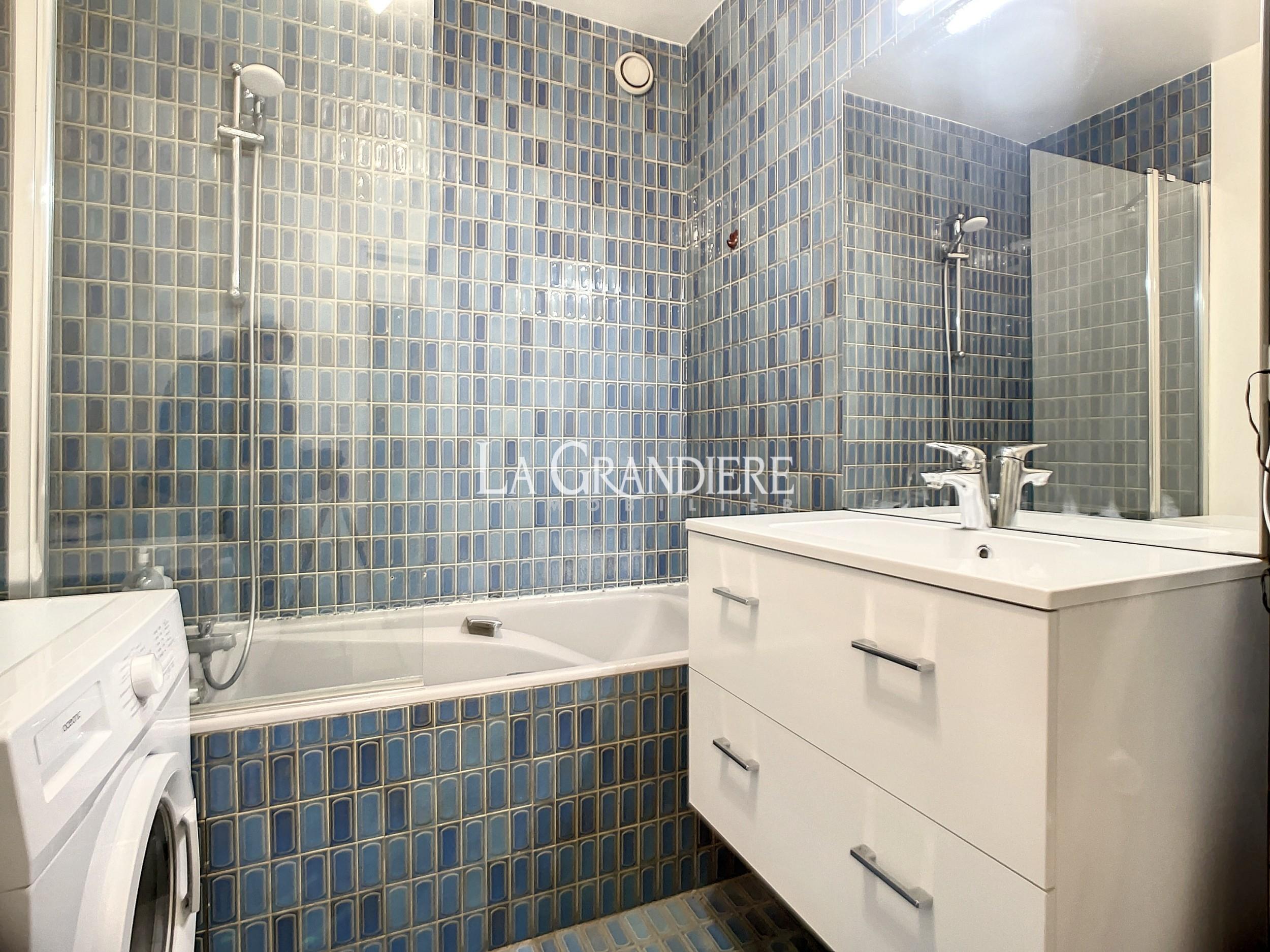 Paris 16ème – Ribéra – Au pied du métro Jasmin, dans un bel immeuble moderne sécurisé (gardien, digicode, interphone), studio meublé en rez-de-chaussée donnant sur jardin. Il comprend une entrée, une belle pièce principale avec grande baie vitrée, une cuisine séparée, une salle de bains avec WC. Cave.