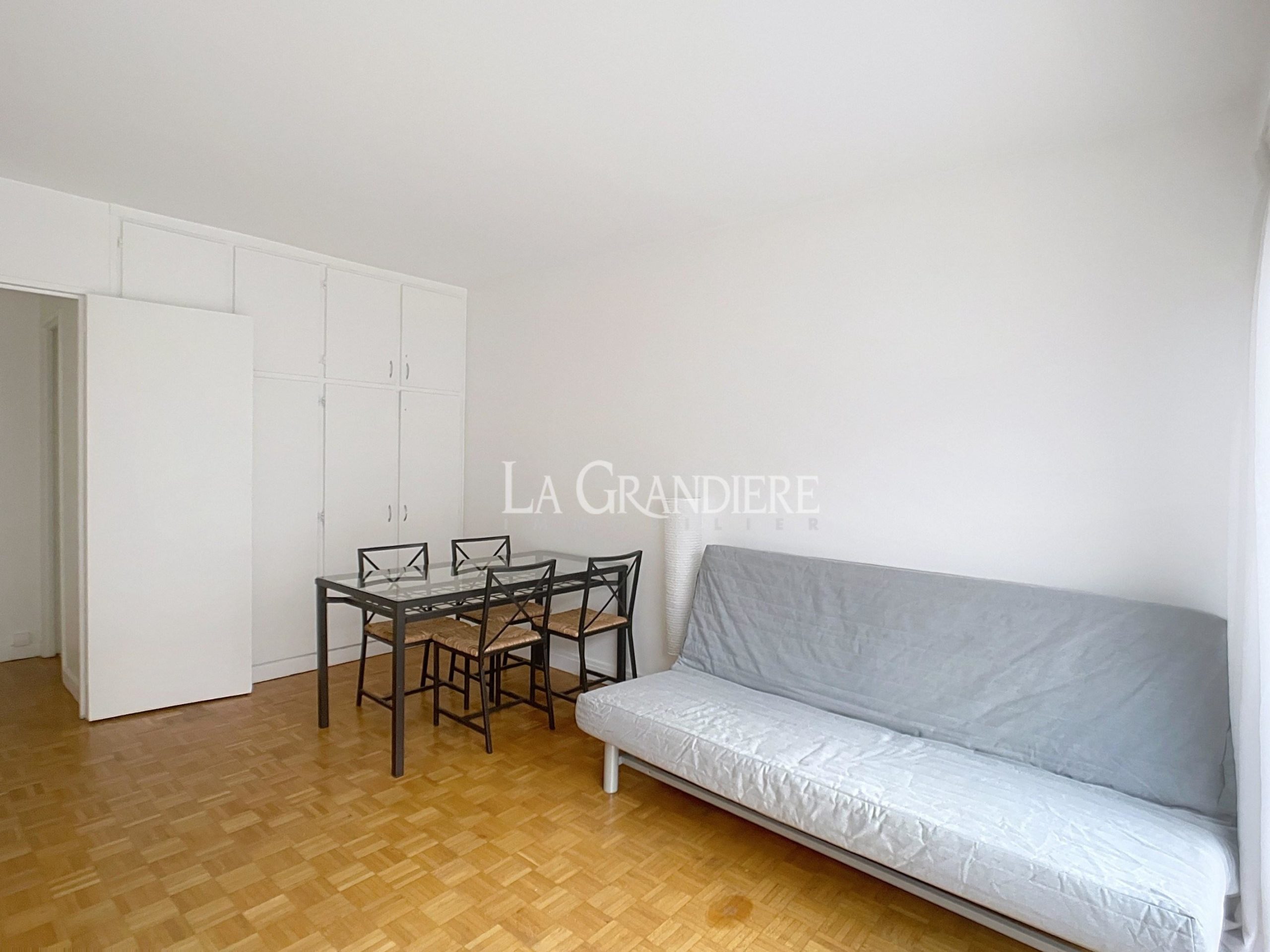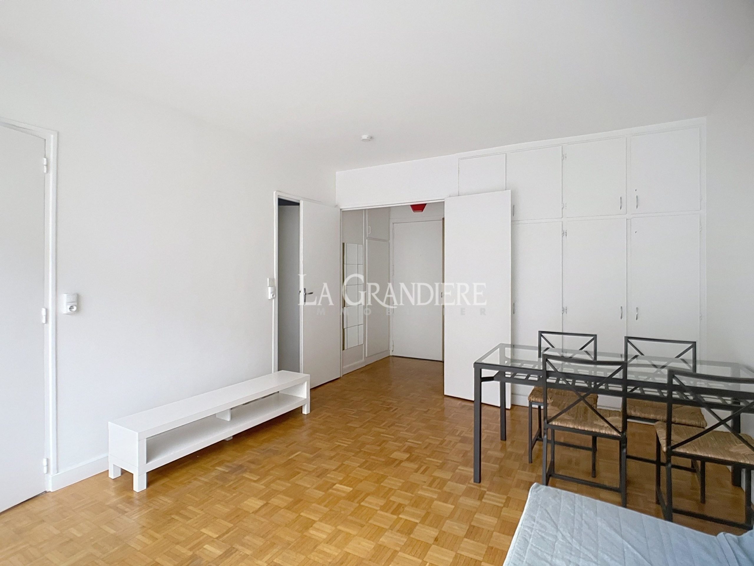 Dans une belle résidence moderne, grand studio comprenant une entrée avec placard, une pièce principale avec grande baie vitrée, une cuisine séparée, une salle de bains, un wc séparé. Proximité commerces et transports. Parquet. Calme et lumineux.
