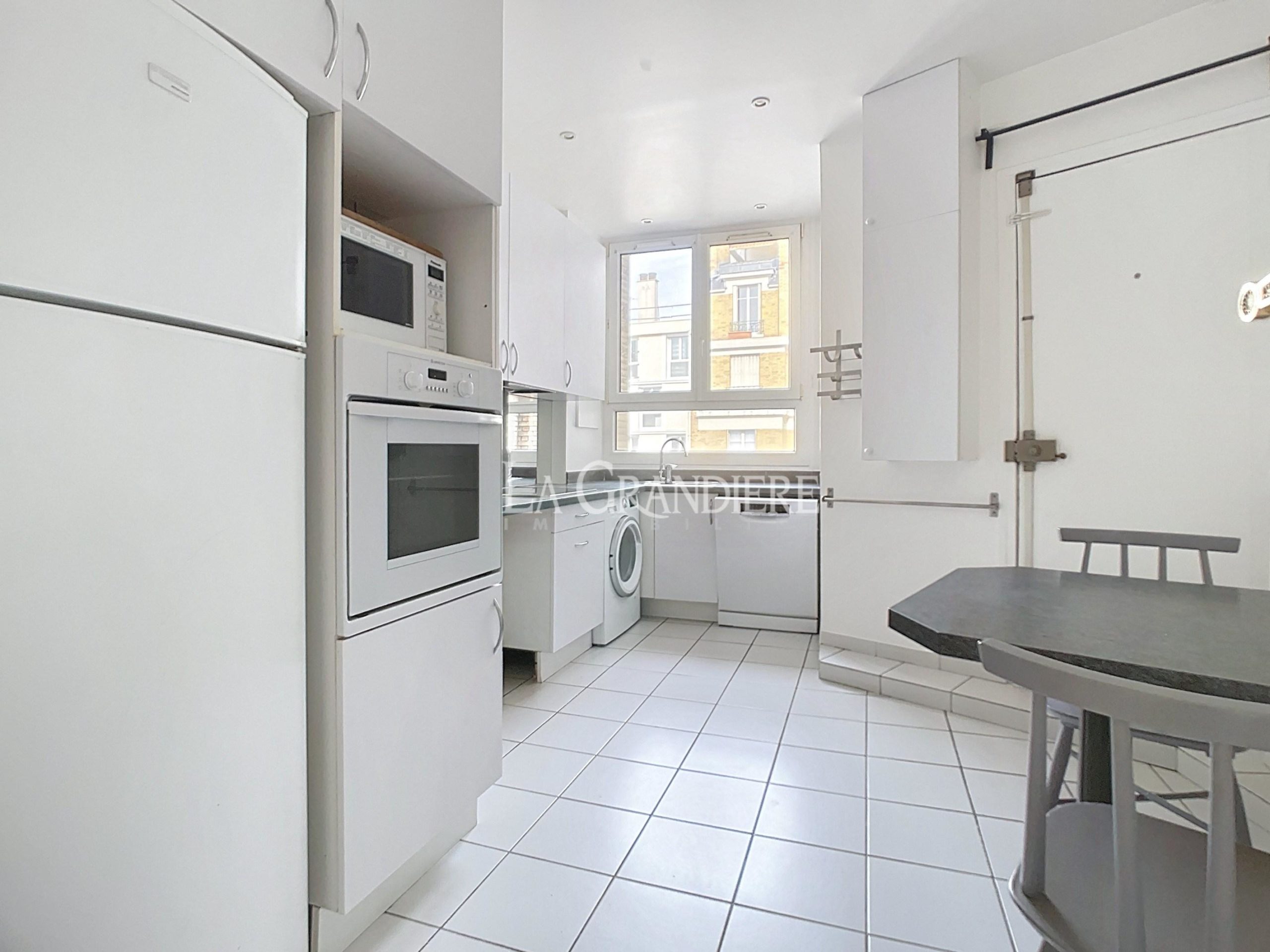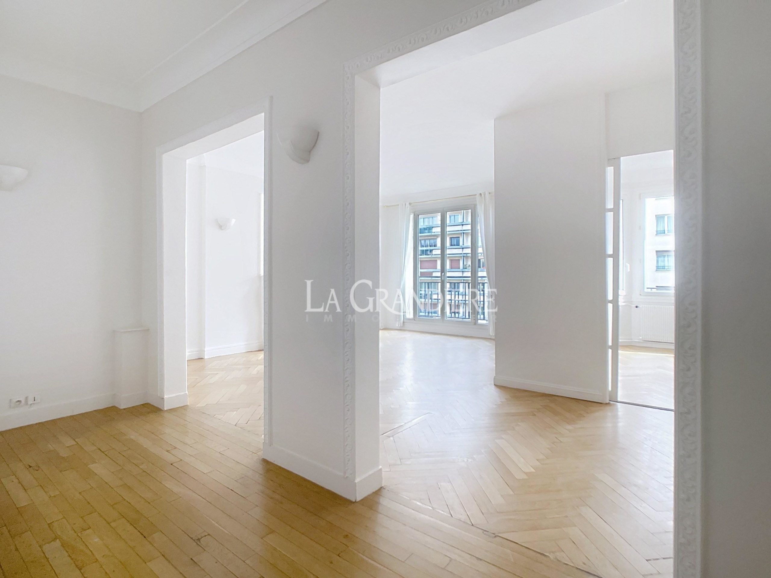 Paris 17 – Porte Maillot – 5ème étage – 5 pièces – 3 ou 4 chambres – 134 m2 – Au 5ème étage d’un immeuble Années 30, bel appartement familial comprenant une entrée, un salon et une salle à manger (ou bureau ou chambre) sur rue, une cuisine aménagée et équipée, trois chambres sur cour dont une avec sa salle de douche, un petit bureau, une salle de bains avec wc et un wc séparé. Une cave complète ce bien.