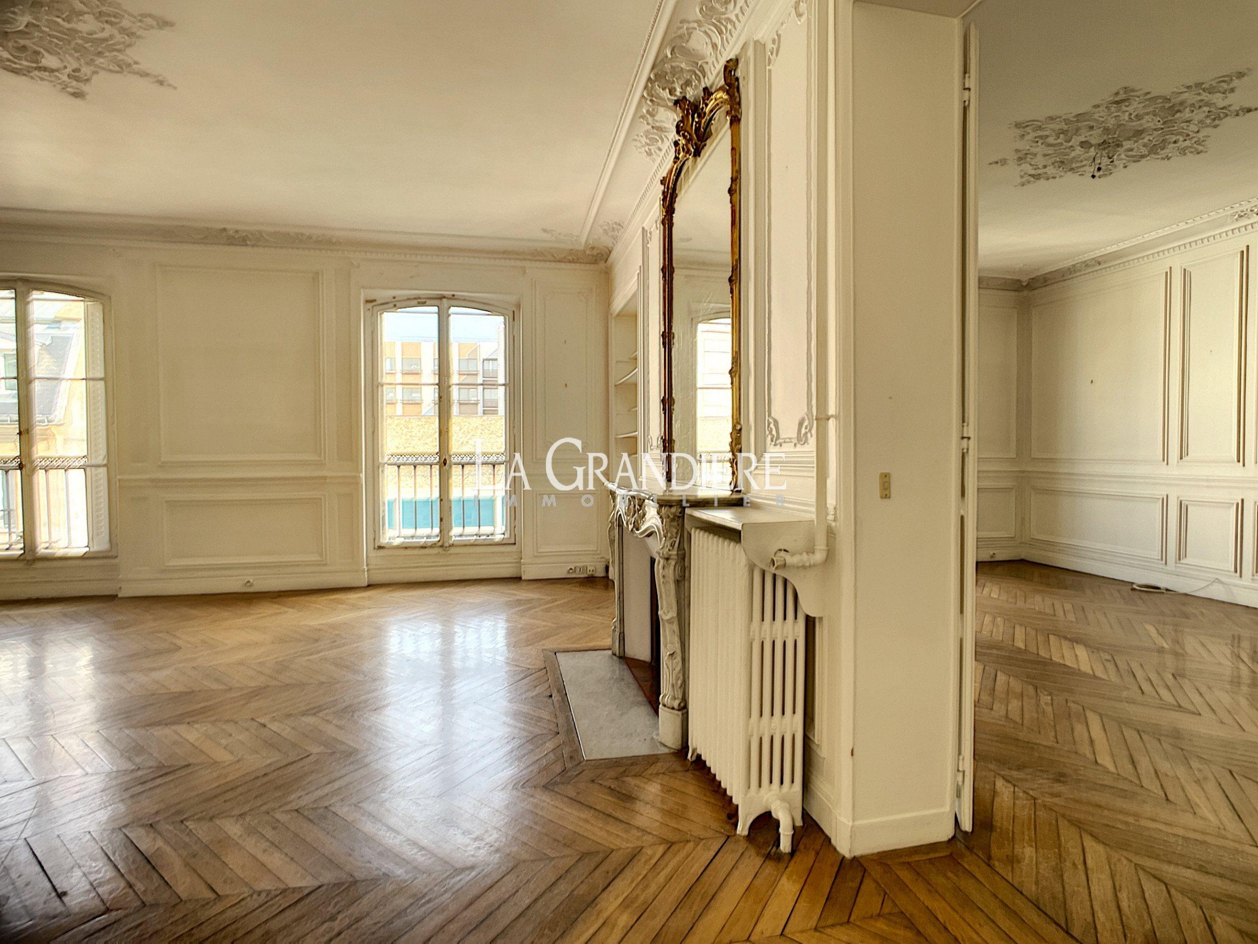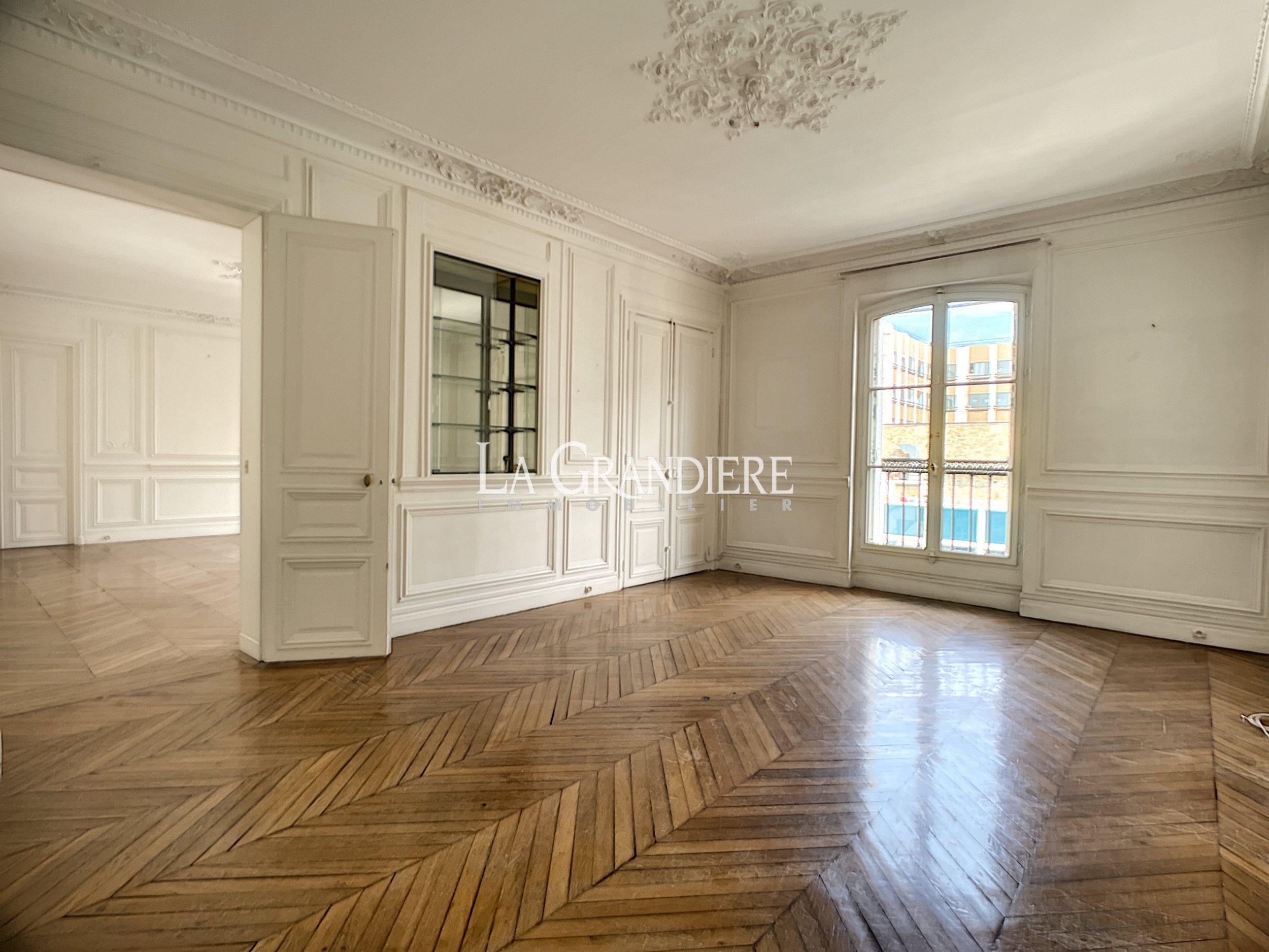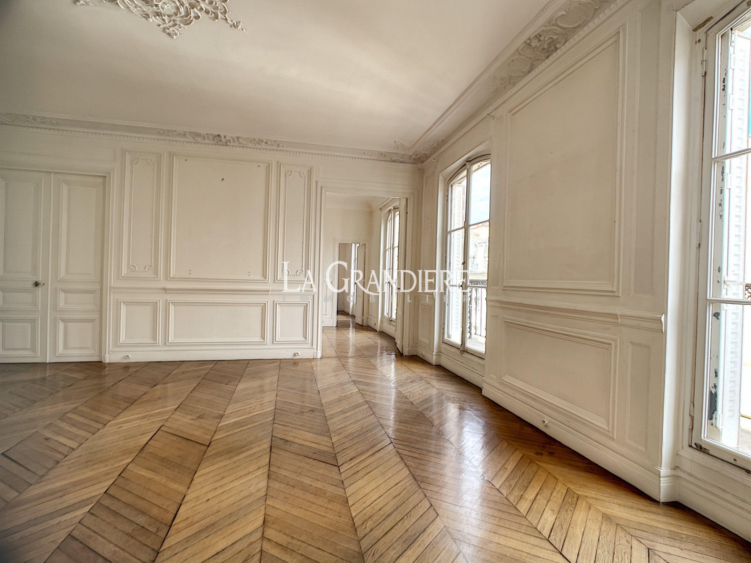 Paris 8ème – Miromesnil / Saint Augustin – Appartement familial (193 m²) avec balcon. Il se situe au 4ème étage. Un seul appartement à l’étage. Sa localisation est idéale, à proximité du métro, d’une station de RER, de la gare Saint Lazare et d’un arrêt de bus. Il s’agit d’un 6 pièces. Il est constitué de la façon suivante : une salle à manger, un grand salon, 4 chambres, une cuisine séparée, 2 salles de bains et un wc séparé. Ses moulures sont magnifiques. Il bénéficie d’une luminosité idéale tout au long de la journée, grâce à la double exposition. Parking possible en sus.