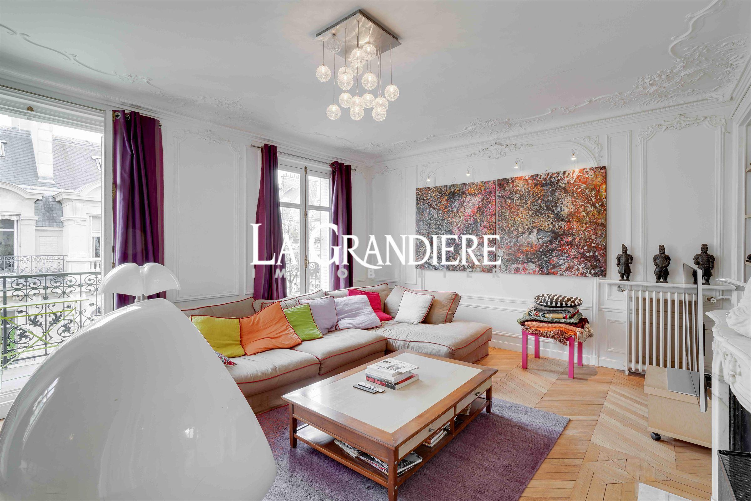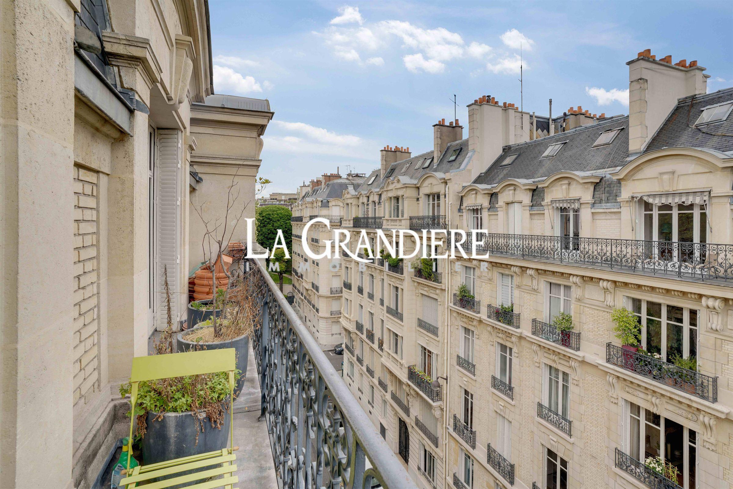 Paris 9ème – Quartier Saint-Georges – Au 5ème et 6ème étages d’un bel immeuble 1900, appartement comprenant une grande entrée, un salon, une salle à manger, un bureau, une cuisine séparée, 5 chambres dont 2 avec mezzanine, 3 salles de douche et 1 salle de bains, 2 wc. Deux grands balcons filants. Beaux volumes, charme.