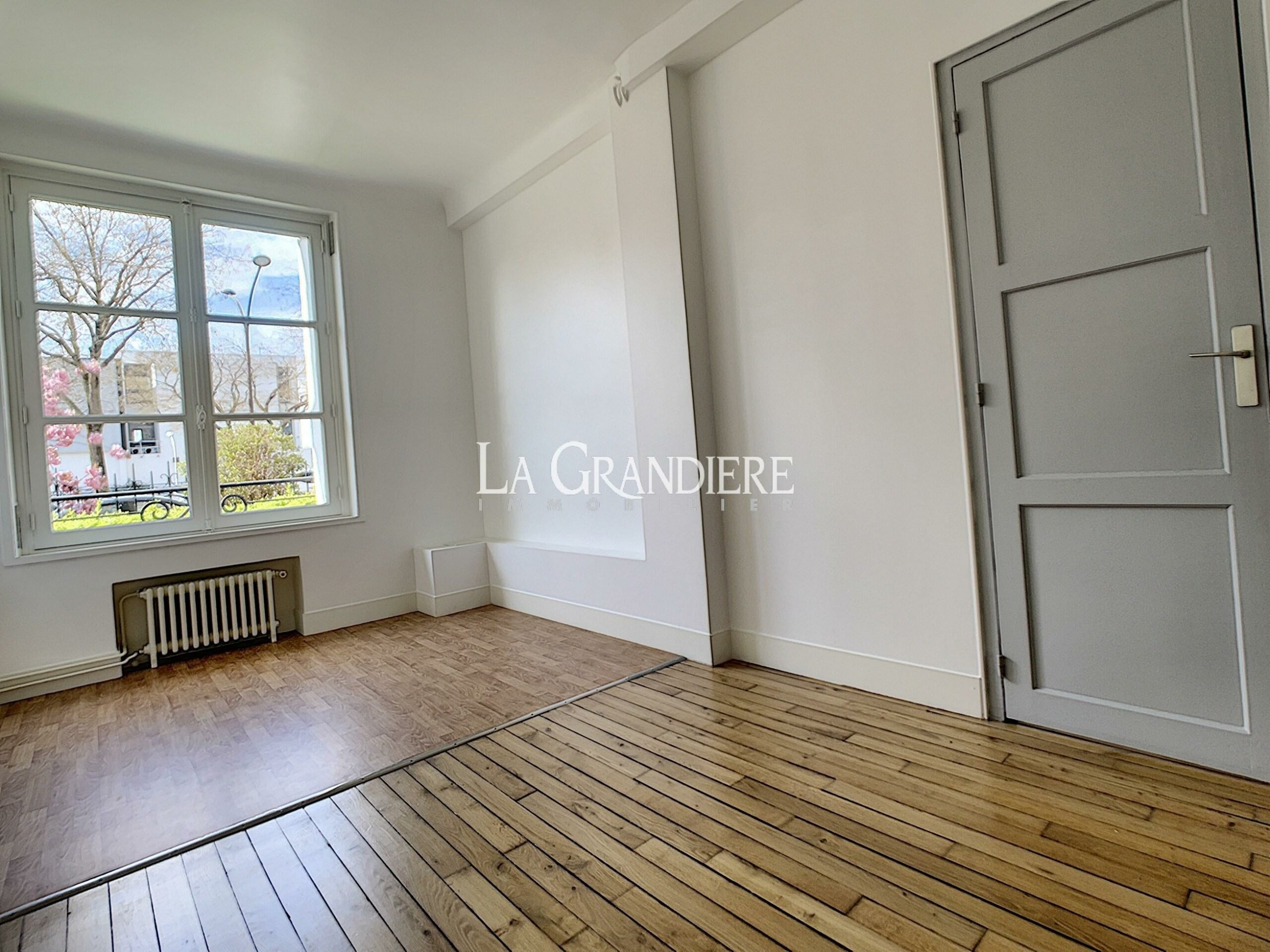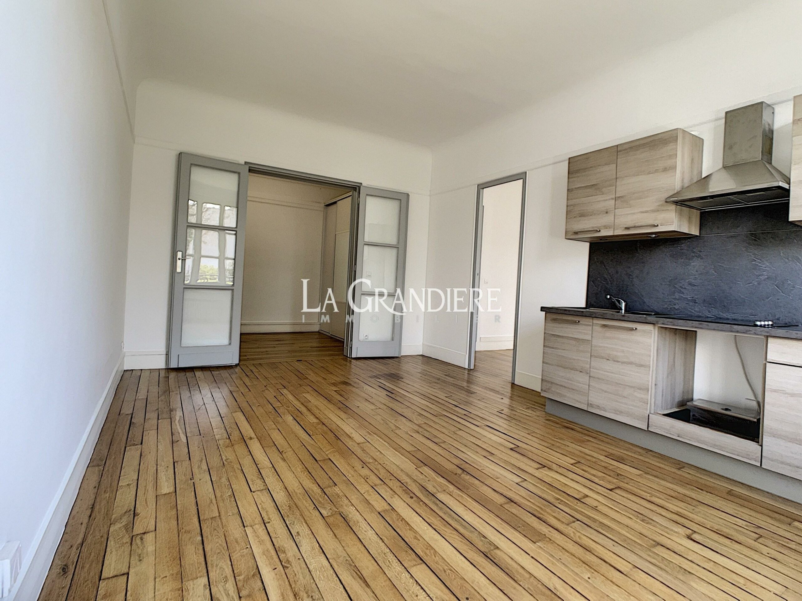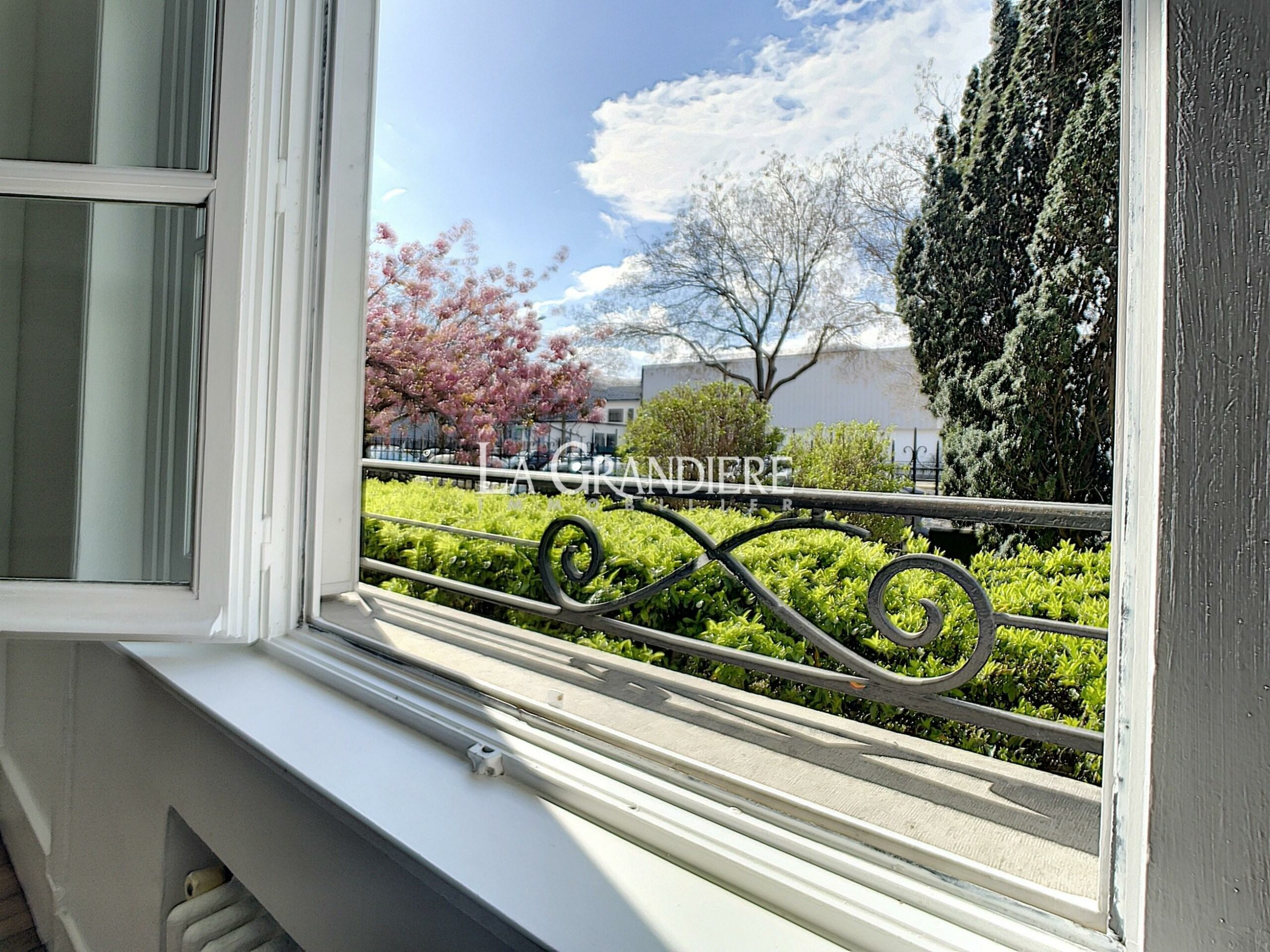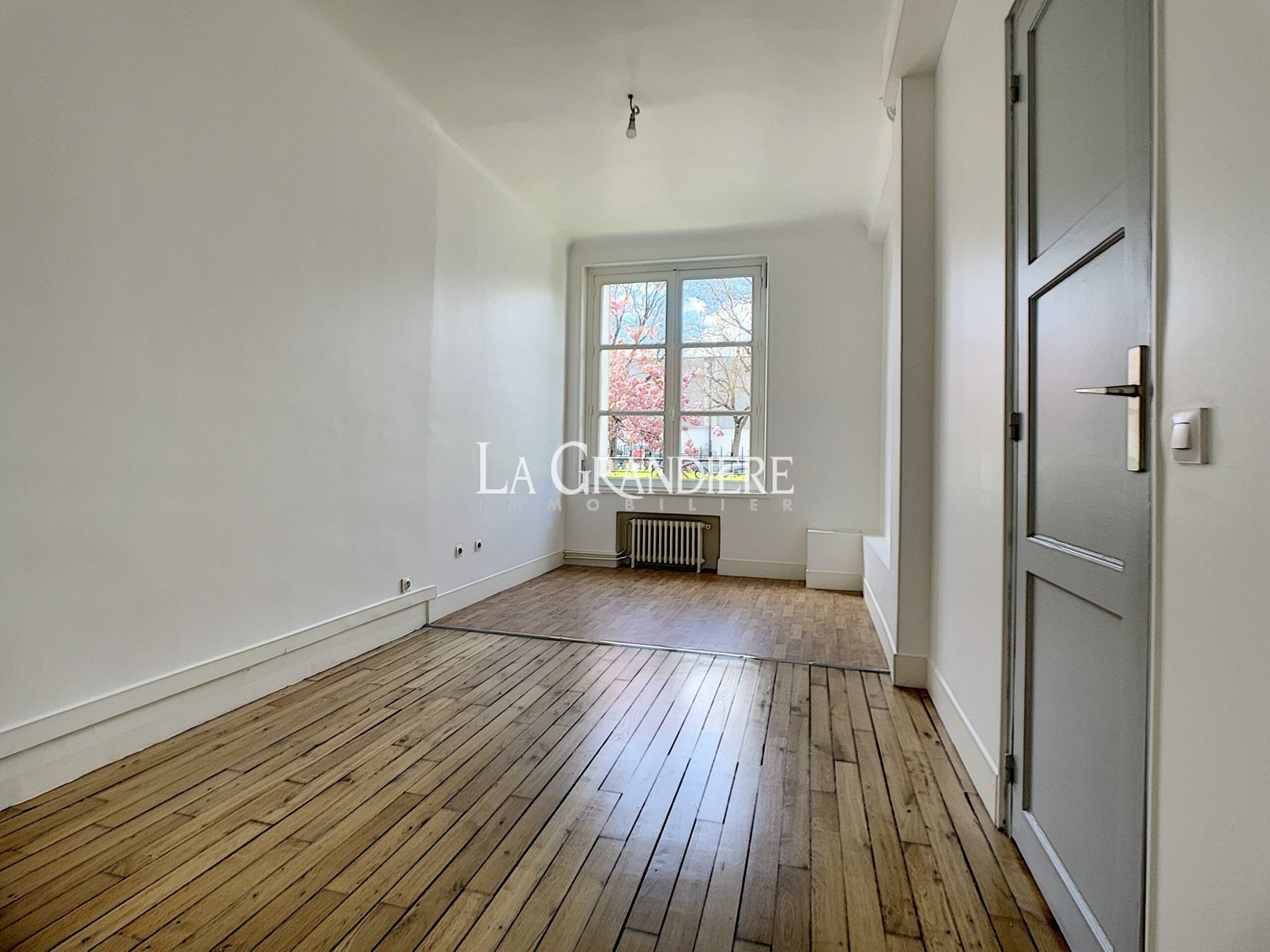 Au rez-de-chaussée avec vue dégagée sur jardin, bel appartement comprenant une grande entrée avec de nombreux placards, un salon avec cuisine américaine aménagée, une chambre, une salle de bains avec wc. Parquet et grande hauteur sous plafond. Parfait état, très agréable et lumineux.